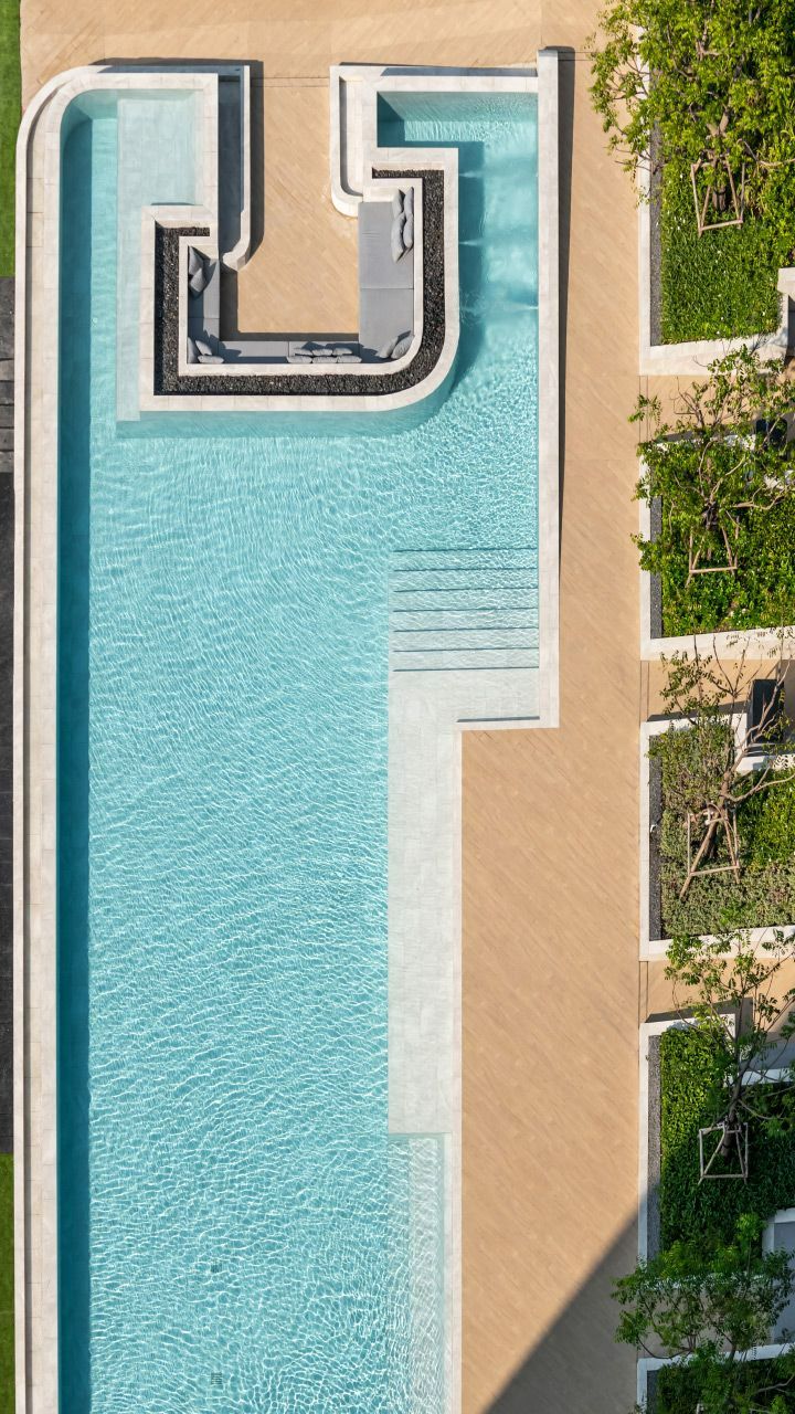 A new pool design featuring The Sunken Seat, Jacuzzi, Hydro Spa, and The Fresh Nook Seat for total relaxation.