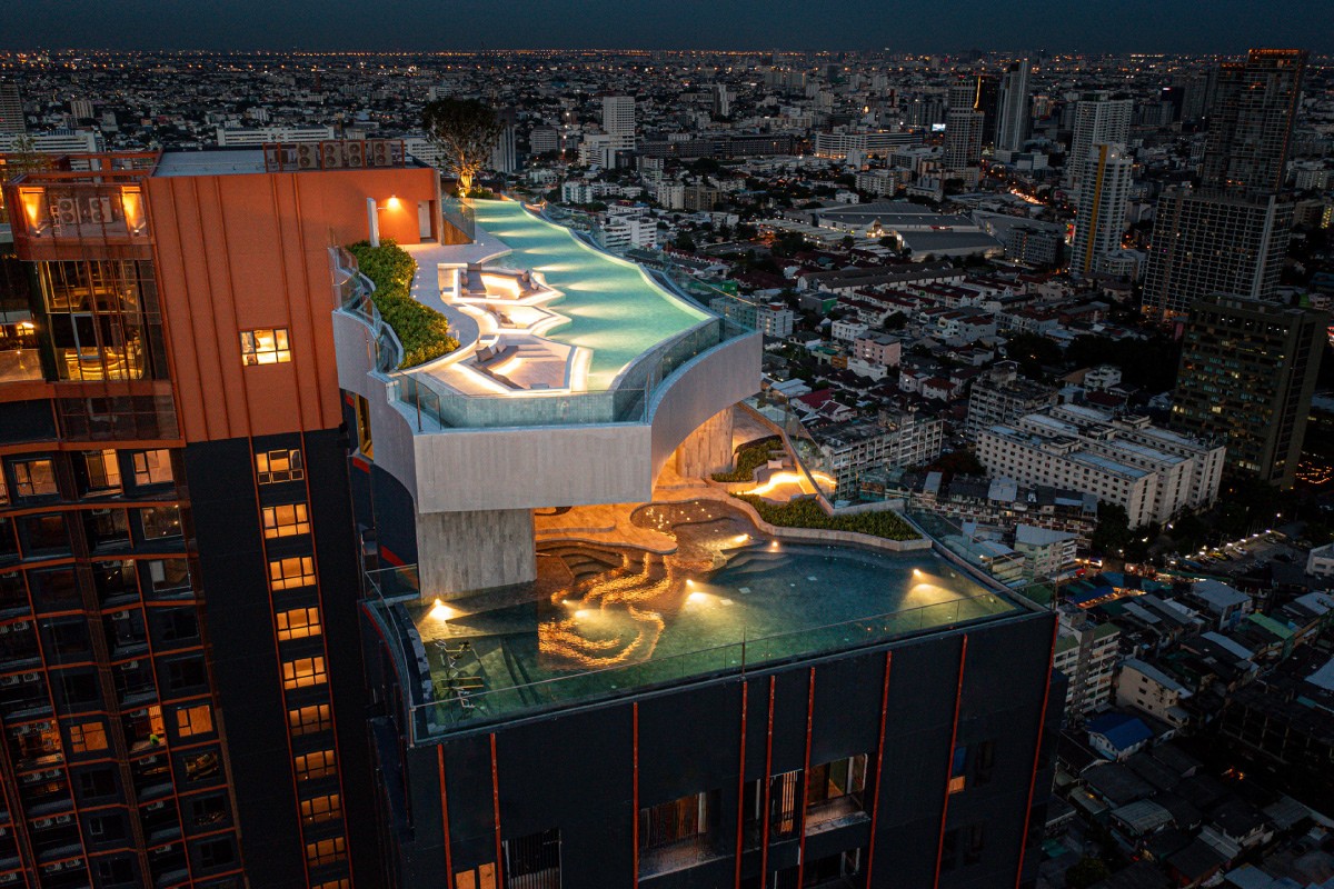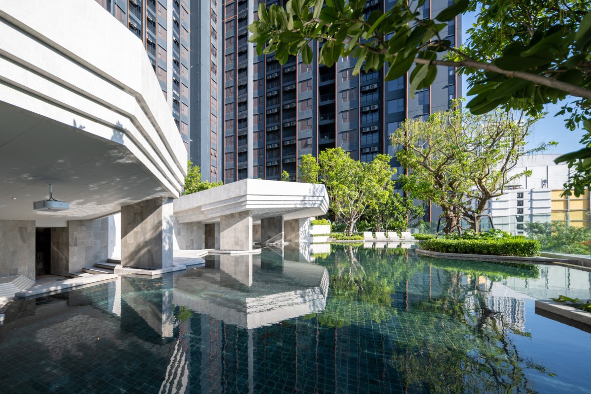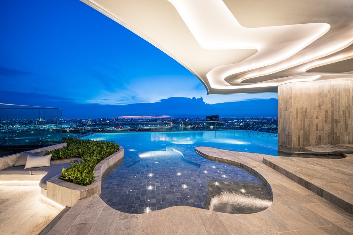 สระว่ายน้ำยาว 35 เมตร ให้คุณได้ผ่อนคลายบนผืนน้ำเสมือนล่องลอยอยู่ในอากาศ และมี Module Lounge ให้นั่งคุยกันได้ในวันพักผ่อนสบายๆ พร้อมชมวิวสวนจตุจักรแบบ 360 องศา