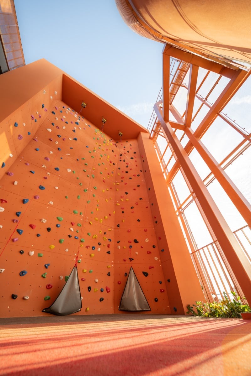 มาถึงโซนเอาท์ดอร์กันบ้าง Skywalk Circuit ออกแบบเป็นแนวทอดยาวสู่ชั้นสูงสุดของอาคาร เสมือนเส้นทางการเดินเทรคกิ้งสู่การพิชิตยอดเขาสูง ตอบโจทย์สายผจญภัยให้มาเดินออกแรงเรียกเหงื่อกันได้เลย