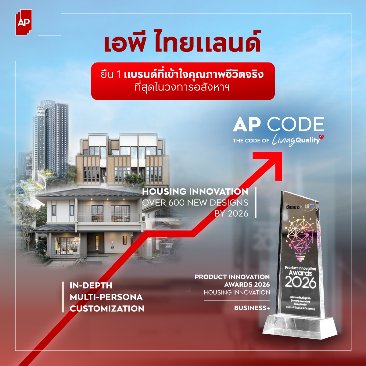 รางวัล Business+ Product Innovation Awards 2026 สาขา Housing Innovation ในครั้งนี้ จึงไม่ใช่เพียงเครื่องยืนยันความสำเร็จในวันนี้ แต่คือบทพิสูจน์ว่า เอพี ไทยแลนด์ คือแบรนด์ที่เข้าใจชีวิตจริงของผู้คน…ได้อย่างลึกซึ้งกว่าใคร