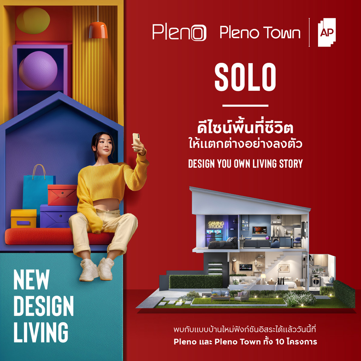 - 10 โครงการใหม่ ภายใต้โครงการคุณภาพ PLENO และ PLENO TOWN ครบทุกโซนคุณภาพ ราคาเริ่มต้นเพียง 2.39 ล้านบาท* เท่านั้น ลงทะเบียนเข้าชมโครงการและรับสิทธิพิเศษได้ที่ https://apthai.ly/solo-living