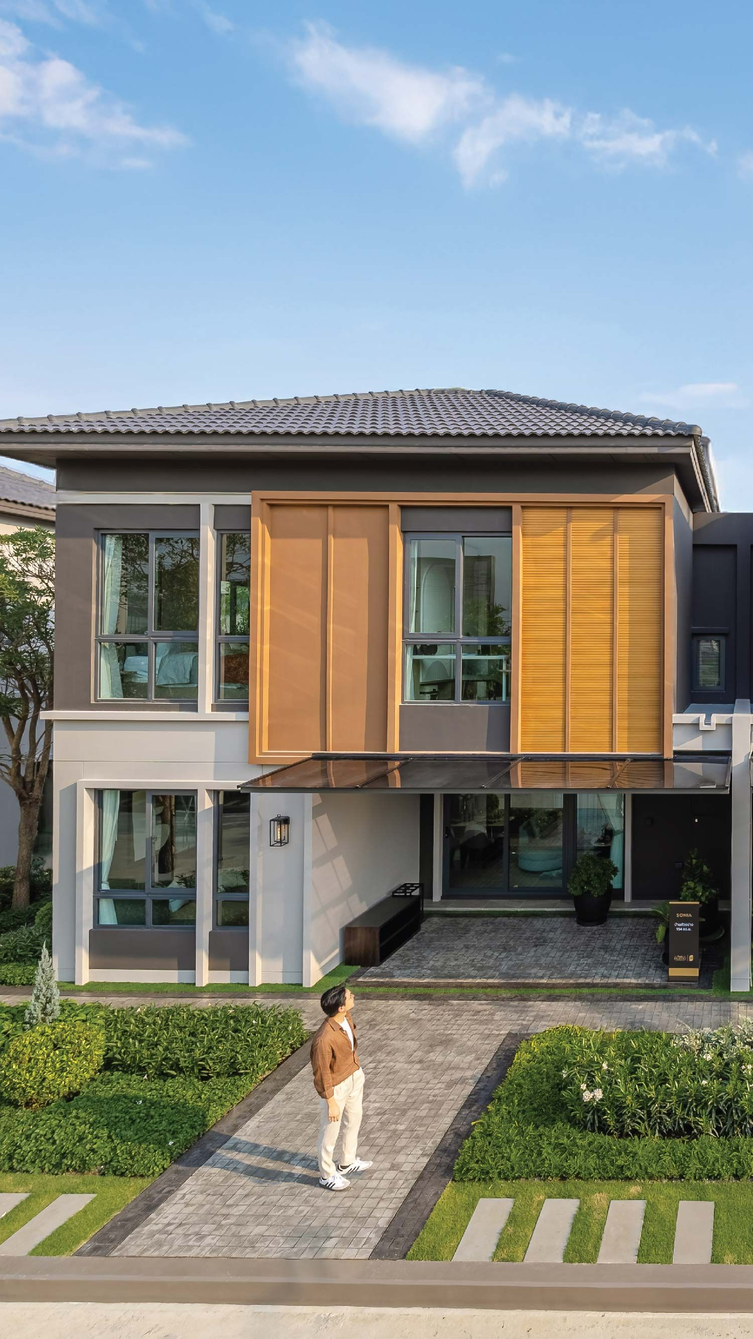 ทางเข้าโครงการโดดเด่น ออกแบบภายใต้ Concept โมเดิร์นคลาสสิค
