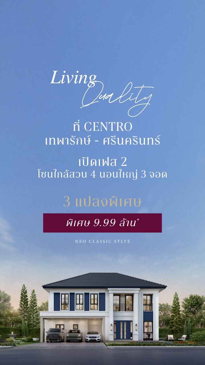 รับส่วนลดและสิทธิพิเศษเมื่อลงทะเบียนนัดหมายเข้าชมโครงการ CENTRO เทพารักษ์–ศรีนครินทร์ หรือดูข้อเสนอสุดพิเศษเพิ่มเติมในแต่ะละช่วงได้ที่ โปรโมชันบ้านเดี่ยว AP